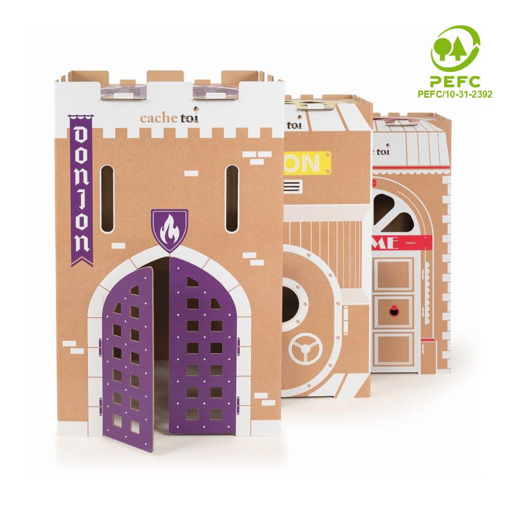 Les raisons de notre engagement dans la certification PEFC : Souhaitant que l’aventure dure le plus longtemps possible entre vos enfants et leurs cabanes, nous avons choisi un carton de qualité à double cannelure composé de 5 feuilles de kraft 100% recyclable et certifiées PEFC. Soucieux de l’environnement, nous souhaitons que notre activité ait un impact minime sur celui-ci.